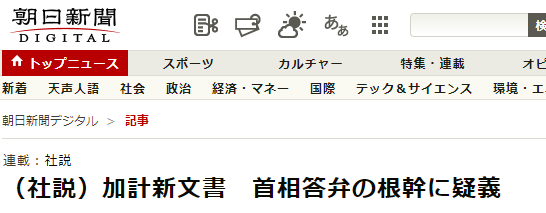 (社説)加計新文書 首相答弁の根幹に疑義