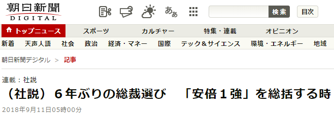 首相が3選されれば、通算の在任日数は戦前の桂太郎首相の2886日を上回り、憲政史上最長になる可能性がある。1強の弊害があらわになった安倍政治の総括なくして、先に進むことは許されない。